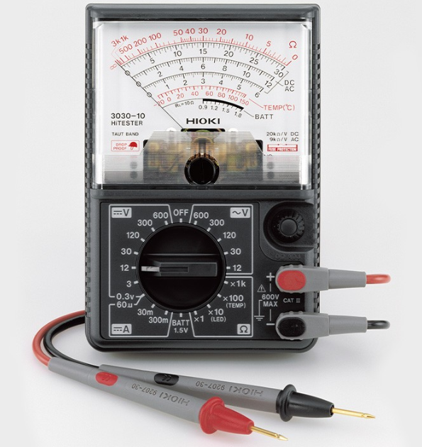 | AC 电压量程 | 12 V (9 kΩ/V) 精度: ±4 % f.s. 30/120/300/600 V (9 kΩ/V) 精度: ±2.5 % f.s. 平均整流有效值, 最大额定电压:600V |