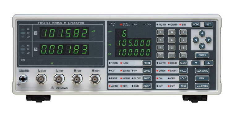 | 功能 | BIN分类测量 (3504-40除外), 触发同步输出, 测量条件记忆, 测量值的比较功能, 平均值功能, Low-C筛选功能, 振动功能, 控制用输出输入 (EXT. I/O), RS-232C接口(标配), GP-IB接口(3504-40除外) |