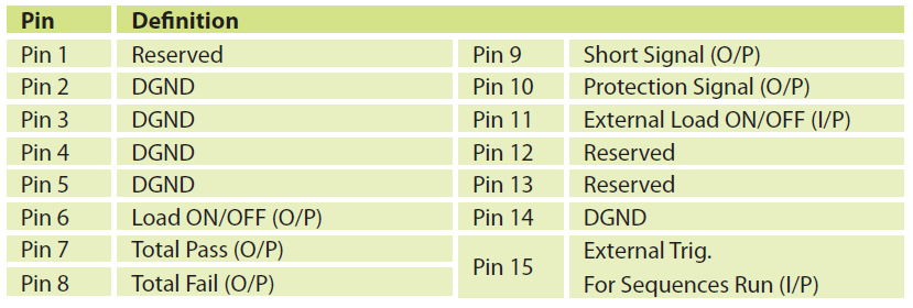 数字I/O控制接口在自动测试系统的应用环境中,可藉由I/O信号进行简易操作与判定。例如:透过I/O信号可启动负载、启动OCP测试、启动时序测试、取得负载状态信号等。