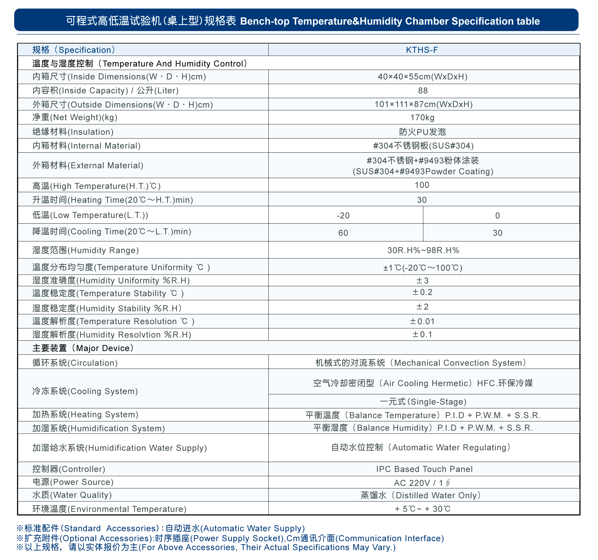 高低温试验箱-桌上型的目的是模拟产品在气候环境温湿组合条件下(高低温操作与储存、温度循环、高温高湿、 低温低湿、结露试验...等),检测产品本身的适应能力与特性是否改变,并且提供较轻巧的体积,方便研发单位测试时使用。 ※ 需符合国际性规范之要求(IEC、JIS、GB、MIL…)以达到国际间量测程序一致性(含测试步骤、条件、方法) 避免认知不同,并缩小量测不确定的因素范围发生。