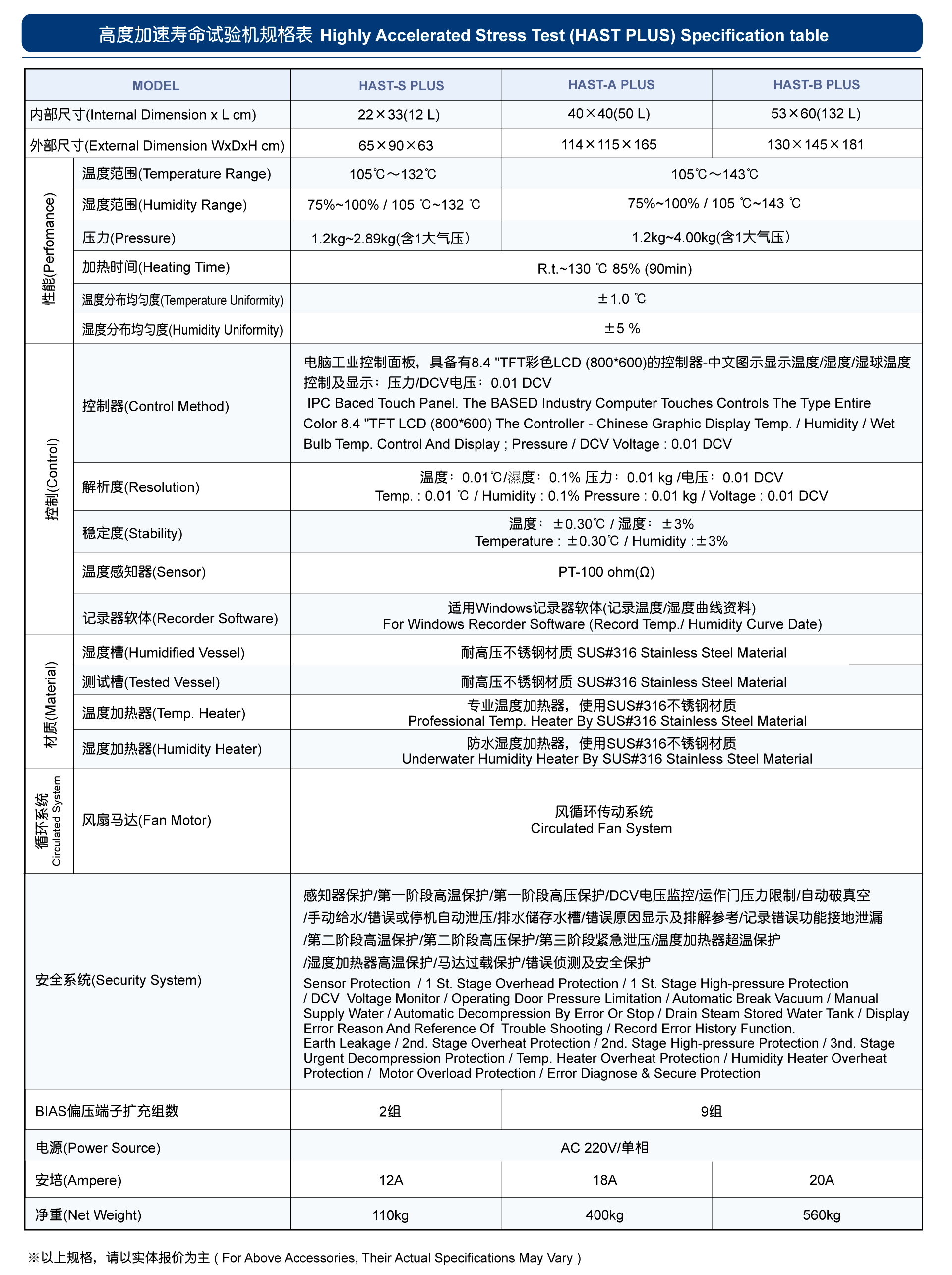 保护待测品的时序装置&BIAS电压端子:符合JESD22-A110之实验规范要求,模拟待测品在高温、高湿环境下,加载最大工作电压,检测内部封装模组材料接合与保护层的渗透,并且观察是否造成迁移。