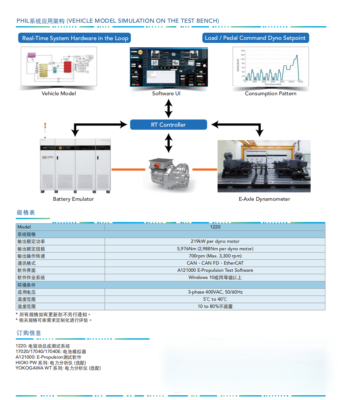 Chroma推出新型电驱动总成测试系统1220,应用在纯电动乘用或商用车等车型,专门针对电机、电机驱动器及变速箱三合一总成系统等进行性能及耐久性验证等。