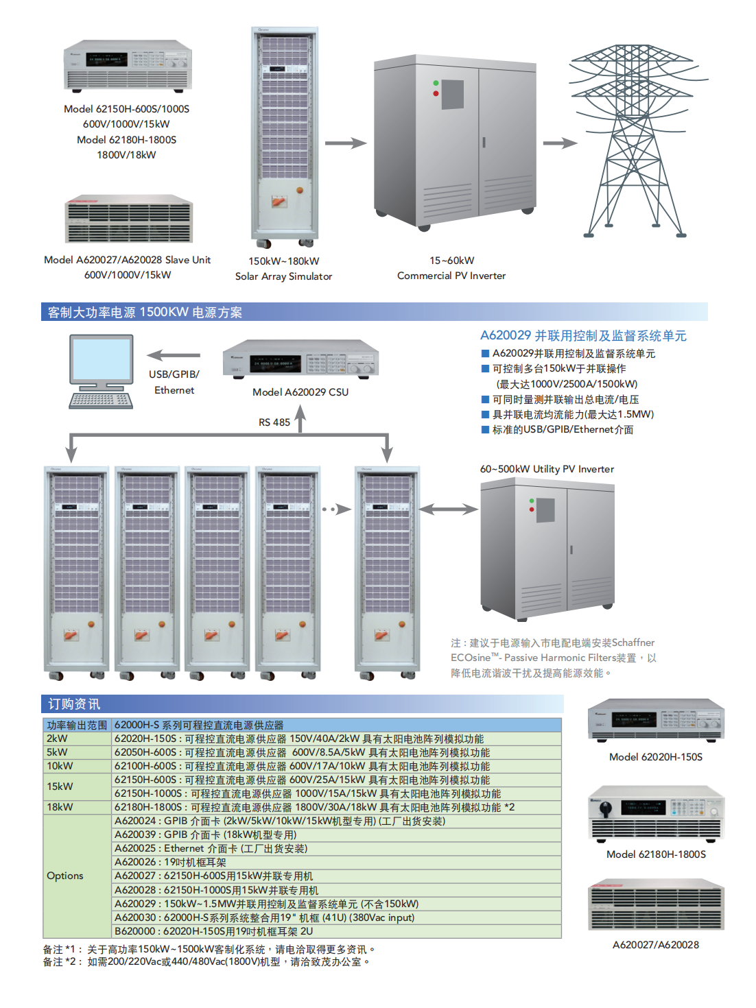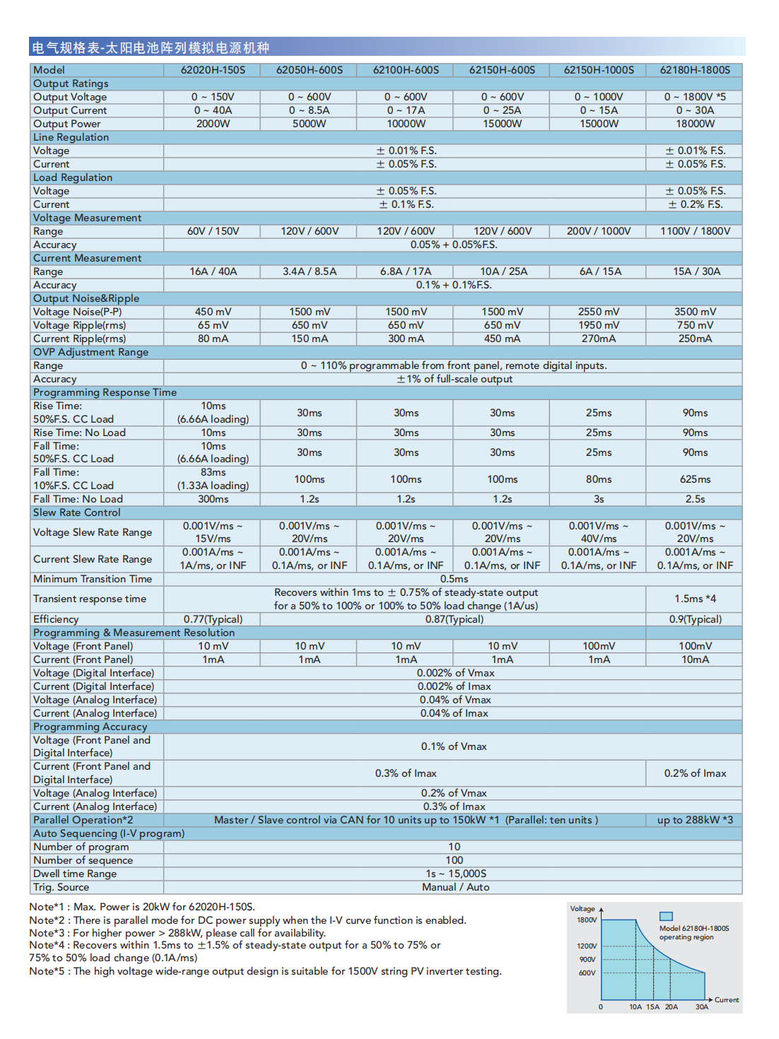 62000H-S系列具备16bit高解析度的数位控制及精准的电压及电流量测机制,并搭配图形化操作软体(Softpanel),此可即时地测试及显示光伏逆变器的最大功率追踪状况,且测试MPPT EFF%读值,另外使用者可选择欲储存的量测读值于软体上。