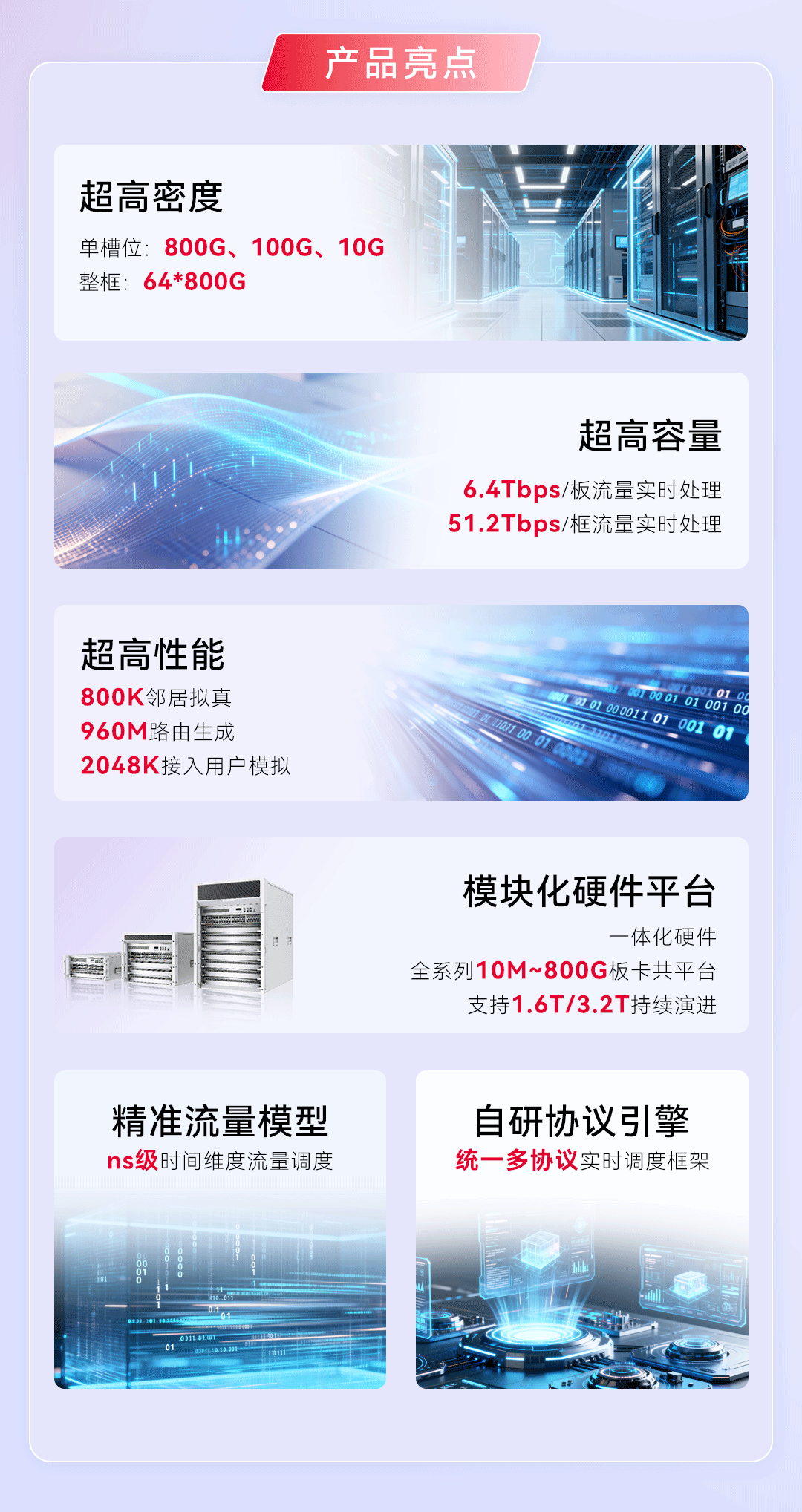 持续夯实高速发展的数字世界万里眼数字网络测试仪,为数据密集型和计算密集型场景提供复杂组网与极限性能测试解决方案,加速产品市场突破。